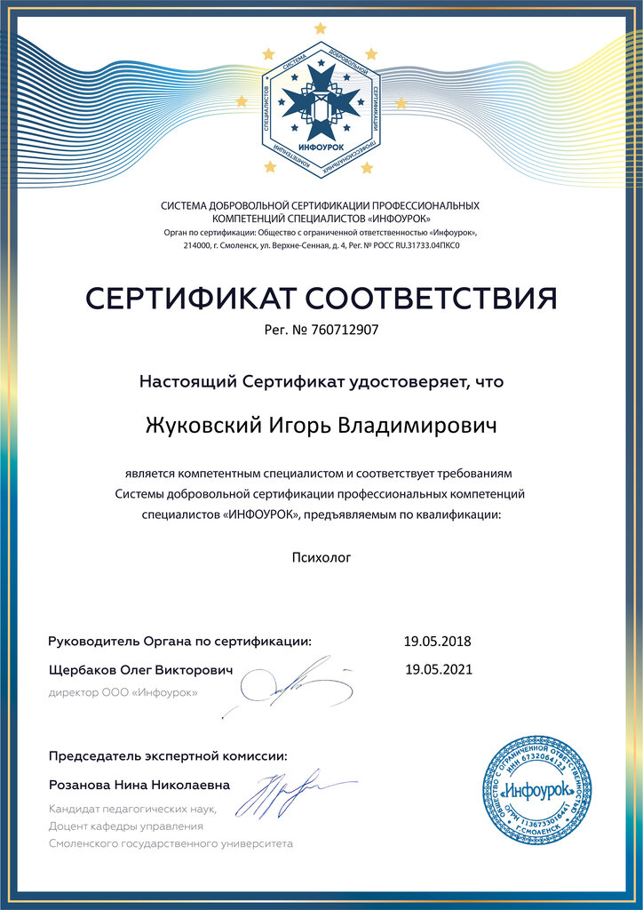 Психолог Жуковский И. В.